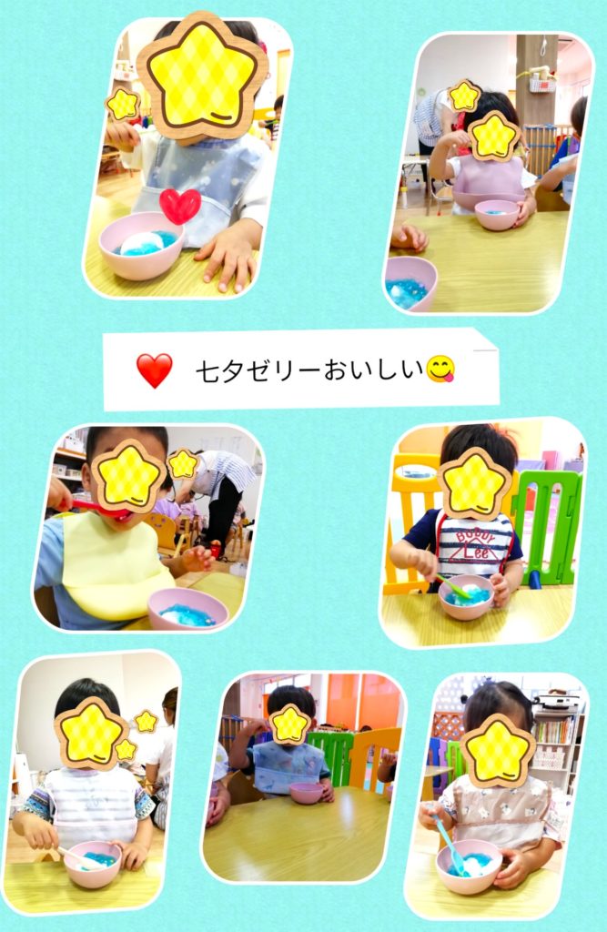 お昼からは調理員さん手作りの七夕ゼリーも食べました。おいしかったようで、みんなおかわりしていましたよ😋